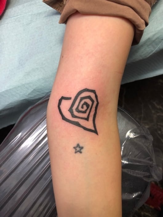 肘内側への施術になります。 以前彫らせて頂いた星とのバランス感がいいですね。